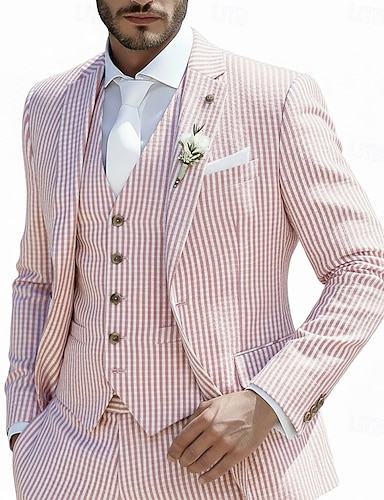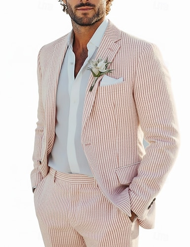 Miesten Pellava puvut Ranta häät Punastuvan vaaleanpunainen Taivaan sininen Kevät, Syksy, Talvi, Kesä Puku Yhtenäinen Normaali istuvuus 2-osainen setti Yksirivinen yksi nappi
