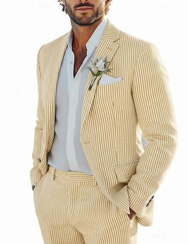 Miesten Pellava puvut Ranta häät Häät Beesi Kevät, Syksy, Talvi, Kesä Puku Kevyt Vapaa-aika Yhtenäinen Normaali istuvuus 2-osainen setti Yksirivinen yksi nappi