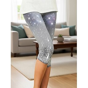 Naisten Leggingsit Loma Muoti Katutyyli Capris Korka vyötärö Kuvitettu Kaltevuus Mukavuus Pehmeä Mukava Elastinen Päivittäin ulko- Loma Hopea Kesä Kevät Syksy Tyköistuva