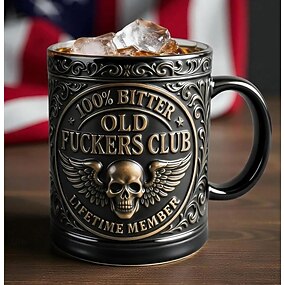 Vanhan f*ckers clubin elinikäinen jäsenmuki, 10oz keraaminen kahvikuppi vintage-luurankodesignilla, rohkea huumorijuoma jokapäiväiseen käyttöön, vanhan runkkarin vitsilahja miehille &Old Fuckers