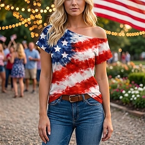 Itsenäisyyspäivä amerikkalainen juhlavuosi isänmaallinen naisten t-paita painatus graafinen lippu kirjain tyylikäs klassinen rento lyhythihainen pyöreällä kaula-aukolla säännölliset yöpaitat