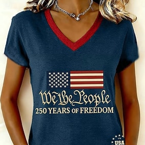 Itsenäisyyspäivä Patriottinen Naisten T-paita Graafinen Kirjain Vintage Tyylikäs Klassinen Lyhythihainen Pyöreä kaula-aukko Normaali Yksityiskohdat Päivittäin Viikonloppu Printti Sininen Valkoinen