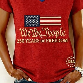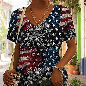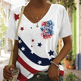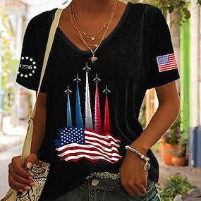 Itsenäisyyspäivä Patriottinen Naisten T-paita Graafinen Kasvit Lippu Vintage Tyylikäs Klassinen Lyhythihainen V-aukko Yleiset Paidat Päivittäinen Viikonloppu Painatus Musta Valkoinen Punainen