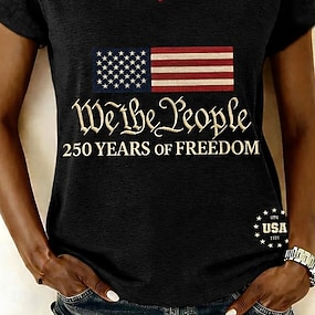 Amerikan itsenäisyyspäivä Naisten T-paita Painettu Kuvitettu Kirjain Vintage Tyylikäs Klassinen Lyhythihainen Pyöreä kaula-aukko Tavalliset topit Päivittäin Sininen Musta Valkoinen Rubiini Kesä Kevät