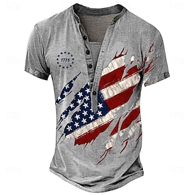Miesten Kuvitettu Yhdysvaltain Yhdysvaltain lippu Yhdysvaltain 250-vuotisjuhla 4. heinäkuuta Paita Napita paita Rento paita Pitkähihainen Havaijilainen Vapaa-aika Mukava ulko- Loma Katu Kevät Syksy