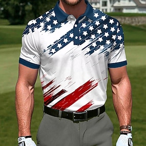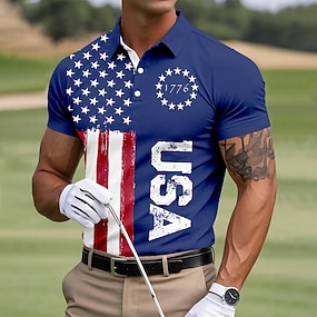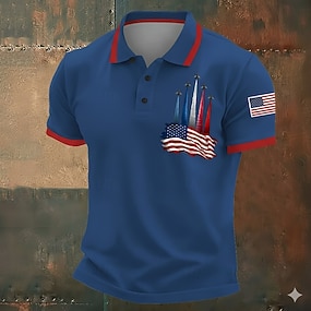 4. heinäkuuta 2026 250. Miesten Yhdysvaltain Yhdysvaltain lippu Polo Lyhythihainen Poolopaidat Kauluskäänne Vapaa-aika Urheilu- ja treenivaatteet 3D-tulostus Napit Kesä Sininen