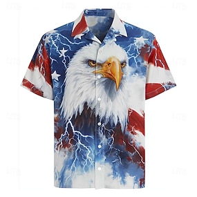 Miesten Yhdysvaltain 250-vuotisjuhla 4. heinäkuuta Kotka Yhdysvaltain lippu Paita Rento paita Kuubalainen paita Lyhythihainen Vintage retro Katuvaatteet Pyhäpäivä Kesä Kevät Camp Collar -paita