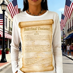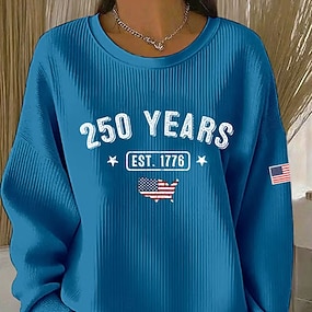 Itsenäisyyspäivä Amerikkalainen Vuosipäivä Patriottinen Naisten T-paita Grafiikkikirjain Lippu Tyylikkäät Klassiset Rento Pitkät Hihat Pyöreä Kaula Arkiviikonloppupainatus Valkoinen-Sininen Valkoinen