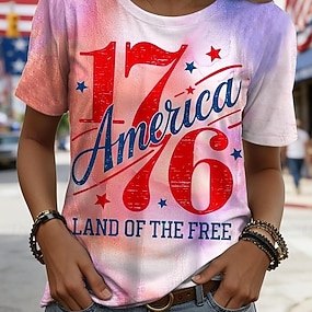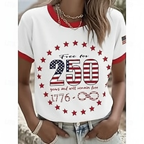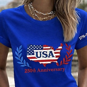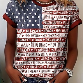 Amerikan itsenäisyyspäivä Naisten T-paita Painettu Kuvitettu Tyylikäs Klassinen Vapaa-aika Lyhythihainen Tiukka pyöreä kaula-aukko Tavalliset topit Päivittäin Urheilu Bile Sininen Rubiini Kesä Kevät
