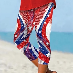 itsenäisyyspäivä isänmaallinen naisten capri-housut leggingit loma hawaii tyylikkäät caprit keskikorkeat housut graafinen abstrakti mukavuus joustava loma muodollinen katu valkoinen punainen slim fit