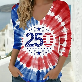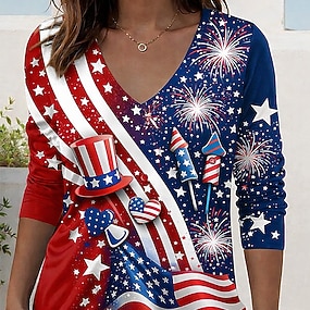 Amerikan itsenäisyyspäivä Naisten T-paita Painettu Kuvitettu Amerikan lippu Tyylikäs Klassinen Vapaa-aika Pitkähihainen V kaula-aukko Tavalliset topit Päivittäin Bile Viikonloppu Rubiini Vaaleanharmaa