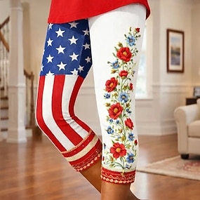 Naisten Housut Leggingsit Loma Katutyyli Perus Täyspitkä Korka vyötäröPantsAmerikan itsenäisyyspäivä Kuvitettu Amerikan lippu Joustava vyötärö Painettu Mukavuus Hengitettävyys Mukava Erittäin