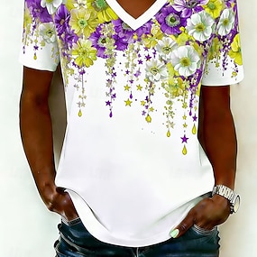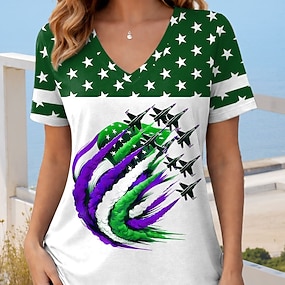 Amerikan itsenäisyyspäivä Naisten T-paita Painettu Kuvitettu Lippu Tyylikäs Klassinen Vapaa-aika Lyhythihainen V kaula-aukko Tavalliset topit Päivittäin Rubiini Purppura Apila Kesä Kevät