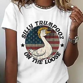 Amerikan itsenäisyyspäivä Naisten T-paita Painettu Kuvitettu Kirjain Amerikan lippu Tyylikäs Klassinen Vapaa-aika Lyhythihainen Tiukka pyöreä kaula-aukko Tavalliset topit Päivittäin Musta Valkoinen