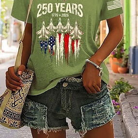Amerikan itsenäisyyspäivä Naisten T-paita Painettu Kuvitettu Lippu Tyylikäs Klassinen Vapaa-aika Lyhythihainen Tiukka pyöreä kaula-aukko Tavalliset topit Päivittäin Bile Sininen Rubiini Kesä Kevät
