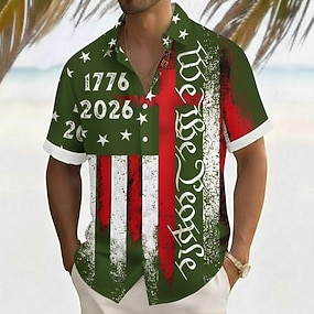 Miesten Yhdysvaltain 250-vuotisjuhla 4. heinäkuuta Yhdysvaltain lippu Paita Kuubalainen paita Button Up paita Lyhythihainen Patriotismi ulko- Pyhäpäivä Kesä Kevät Camp Collar -paita 3D-tulostus Musta