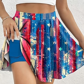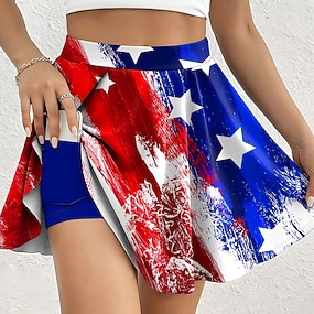 Amerikan itsenäisyyspäivä naisten lomahame tyylikäs muoti ranta-asu rento polven yläpuolella korkea vyötärö hame graafinen printti joustava päivittäin ranta sininen punainen tummansininen kesä