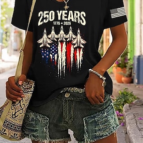 4. heinäkuuta 2026 250. muistopäivä Isänmaallinen Patriot 3D-tulostettu Yhdysvaltain lippu pyöreä kaula-aukkoinen lyhythihainen t-paita rento jokapäiväinen katu