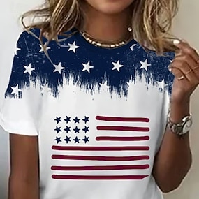 Amerikan itsenäisyyspäivä Naisten T-paita Painettu Kuvitettu Lippu Tyylikäs Perus Klassinen Lyhythihainen Tiukka pyöreä kaula-aukko Pyöreä kaula-aukko Tavalliset topit Päivittäin Sininen Musta