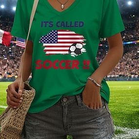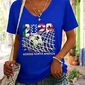 Naisten T-paita Painettu Kuvitettu Jalkapallojoukkue Tyylikäs Klassinen Vapaa-aika Lyhythihainen Tiukka pyöreä kaula-aukko Tavalliset topit Päivittäin Musta Punastuvan vaaleanpunainen Laivaston