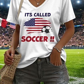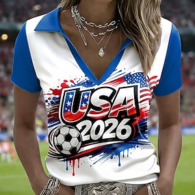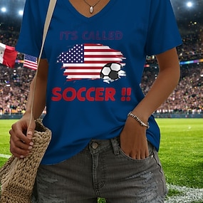 Amerikan itsenäisyyspäivä Naisten T-paita Painettu Kuvitettu Tyylikäs Klassinen Vapaa-aika Lyhythihainen V kaula-aukko Tavalliset topit Päivittäin Bile Viikonloppu Sininen Musta Valkoinen Rubiini