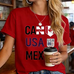 Amerikan itsenäisyyspäivä Naisten T-paita Painettu Kuvitettu Kirjain Amerikan lippu Tyylikäs Vapaa-aika Lyhythihainen Tiukka pyöreä kaula-aukko Tavalliset topit Päivittäin Musta Rubiini Kesä Kevät