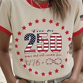 Amerikan itsenäisyyspäivä Naisten T-paita Painettu Kuvitettu Tyylikäs Klassinen Vapaa-aika Lyhythihainen Tiukka pyöreä kaula-aukko Tavalliset topit Päivittäin Urheilu Bile Sininen Rubiini Kesä Kevät