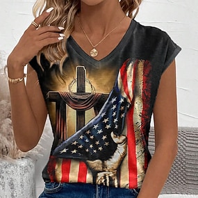 Itsenäisyyspäivä Patriottinen Naisten T-paita Graafinen Kirjain Vintage Tyylikäs Klassinen Lyhyt Hihainen V-kaula Normaali Yläosat Päivittäinen Printti Sininen Musta Valkoinen Punainen Kesä Kevät