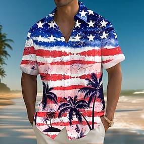 Itsenäisyyspäivä Miesten Yhdysvaltain Yhdysvaltain lippu Yhdysvaltain 250-vuotisjuhla 4. heinäkuuta Patriotismi Paita Kesä paita Button Up paita Lyhythihainen Muoti rento Pyhäpäivä Kesä Kevät