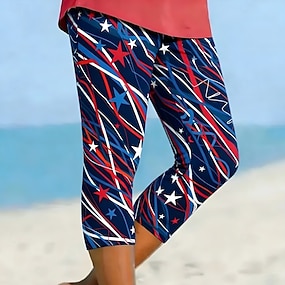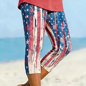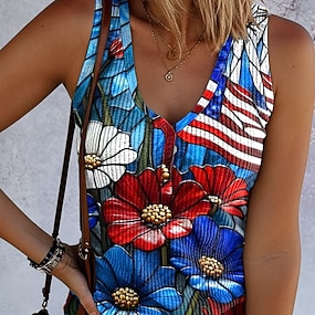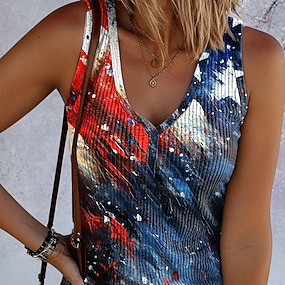 Amerikan itsenäisyyspäivä Naisten Hihaton Painettu Kuvitettu Lippu Amerikan lippu Tyylikäs Klassinen Vapaa-aika Hihaton Hihaton V kaula-aukko Pitkät topit Päivittäin Sininen Rubiini Kesä Kevät