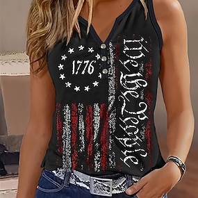 Itsenäisyyspäivä Amerikan vuosipäivä Patriottinen naisten toppiolkaimet lippu päivittäin tyylikäs hihaton lovikaulu säännöllisetpaidat päivittäin lomapäivä napit printti musta kesä