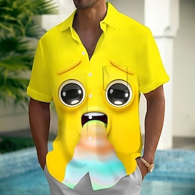 Miesten Piirretty Hauska Hymynaama Paita Kesä paita Button Up paita Lyhythihainen Muoti rento ulko- Loma Arkikäyttö Kesä Kevät Sänkyjen avaus 3D-tulostus kauluspaidat Edessä yksi tasku Keltainen