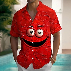 Miesten Piirretty Hauska Hymynaama Paita Kesä paita Button Up paita Lyhythihainen Muoti rento ulko- Loma Arkikäyttö Kesä Kevät Sänkyjen avaus 3D-tulostus kauluspaidat Edessä yksi tasku Rubiini