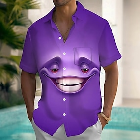 Miesten 3D Print 3D sarjakuva Kiusallinen kasvot Paita Button Up paita Lyhythihainen Hauska Päivittäin Loma Kesä Kevät Sänkyjen avaus 3D-tulostus kauluspaidat Keltainen Purppura Apila