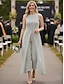 Haalarit Kokopitkä 3/4 hiha Pyöreä Tyylikäs Juhla Häävieras Satiini Morsiammen äidin asu kanssa Applikaatiot Solid Color