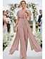 Kaksiosainen Housupuku Nilkkapituinen 3/4 hiha Kauha Olkaimeton Tyylikäs Juhla Muodollinen Häävieras Joustava kangas Morsiammen äidin asu kanssa Nauhat