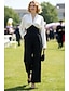 3 -osainen puku Housupuku Kokopitkä Hihaton Pitkähihainen Tiukka pyöreä kaula-aukko Tyylikäs Muodollinen Häävieras Sifonki Satiini Morsiammen äidin asu kanssa Laskokset Koristehelmillä
