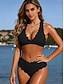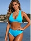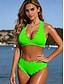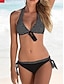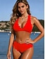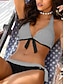 Naisten bikinit 2-osainen uimapuku värilohko thongs hoikka selkä avoin lomaranta-asuste lippugeometrinen halterneck olkaimeton uimapuku