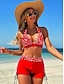 Naisten Bikinimalja 2-osainen Uimapuku Boho Viehkeä Avoin Selkä Seksikäs Tulostus Lomamuoti Kukka V-naru Olkaimeton Uimapuku