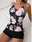 Naisten uima-asut uimapuvut 2-osainen tankiniuimapuku selkä avoin hoikka lomaranta-vaatteet kukkakuva kaula-aukko olkaimeton uimapuku