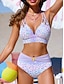 Naisten bikinit 2-osainen uimapuku cheecky ohut selkä avoin lomaranta-asu kukkakuviolla V-pääntiöllä hihattomat uimapuvut