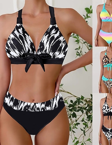 Naisten Uima-asut Bikinit 2 kpl Uimapuku Avoin selkä Trooppinen Ranta-asut Leopardi Riipuskaula Hihaton Uimapuvut
