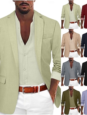 Miesten Pellava bleiseri Sport takki Lovikaulus Muoti Vapaa-aika Yhtenäinen Blazer Salvia Vaalean harmaa Beesi Normaali istuvuus Yksirivinen yksi nappi