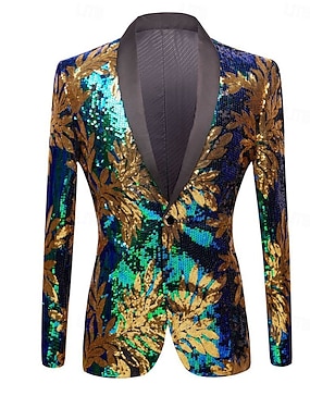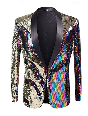 Miesten Blazer-takki Lovikaulus Muoti Disko Paljetti Kuvio Blazer Musta Hopea Fuksia Räätälöity istuvuus Yksirivinen yksi nappi