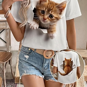 naisten t-paita muoti kissaprintti lyhythihaiset topit pyöreä pääntie päivittäin viikonloppu harmaa kesä 3d kissa