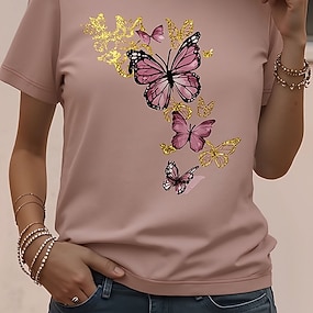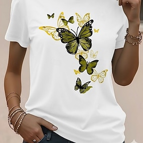 Naisten T-paita Painettu Kuvitettu Eläin Sudenkorento Vintage Tyylikäs Klassinen Lyhythihainen V kaula-aukko Tavalliset topit Päivittäin Bile Viikonloppu Sininen Musta Rubiini Purppura Apila Kes