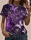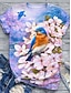 Naisten T-paita Painettu Kukka Kuvitettu Eläin Vintage Tyylikäs Klassinen Lyhythihainen Tiukka pyöreä kaula-aukko Tavalliset topit Päivittäin Viikonloppu Punastuvan vaaleanpunainen Purppura Apila