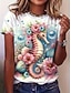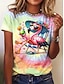 Naisten T-paita Painettu Kukka Kuvitettu Eläin Tyylikäs Klassinen Vapaa-aika Lyhythihainen Tiukka pyöreä kaula-aukko Pyöreä kaula-aukko Tavalliset topit Päivittäin Ruohonvihreä Rubiini Apila Kes