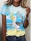 Naisten T-paita Painettu Kuvitettu Eläin Vintage Tyylikäs Klassinen Lyhythihainen Tiukka pyöreä kaula-aukko Tavalliset topit Päivittäin Viikonloppu Sininen Valkoinen Keltainen Punastuvan