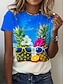 Naisten T-paita Painettu Kuvitettu Eläin Piirretty Tyylikäs Klassinen Vapaa-aika Lyhythihainen Tiukka pyöreä kaula-aukko Pyöreä kaula-aukko Tavalliset topit Päivittäin Sininen Valkoinen Punastuvan